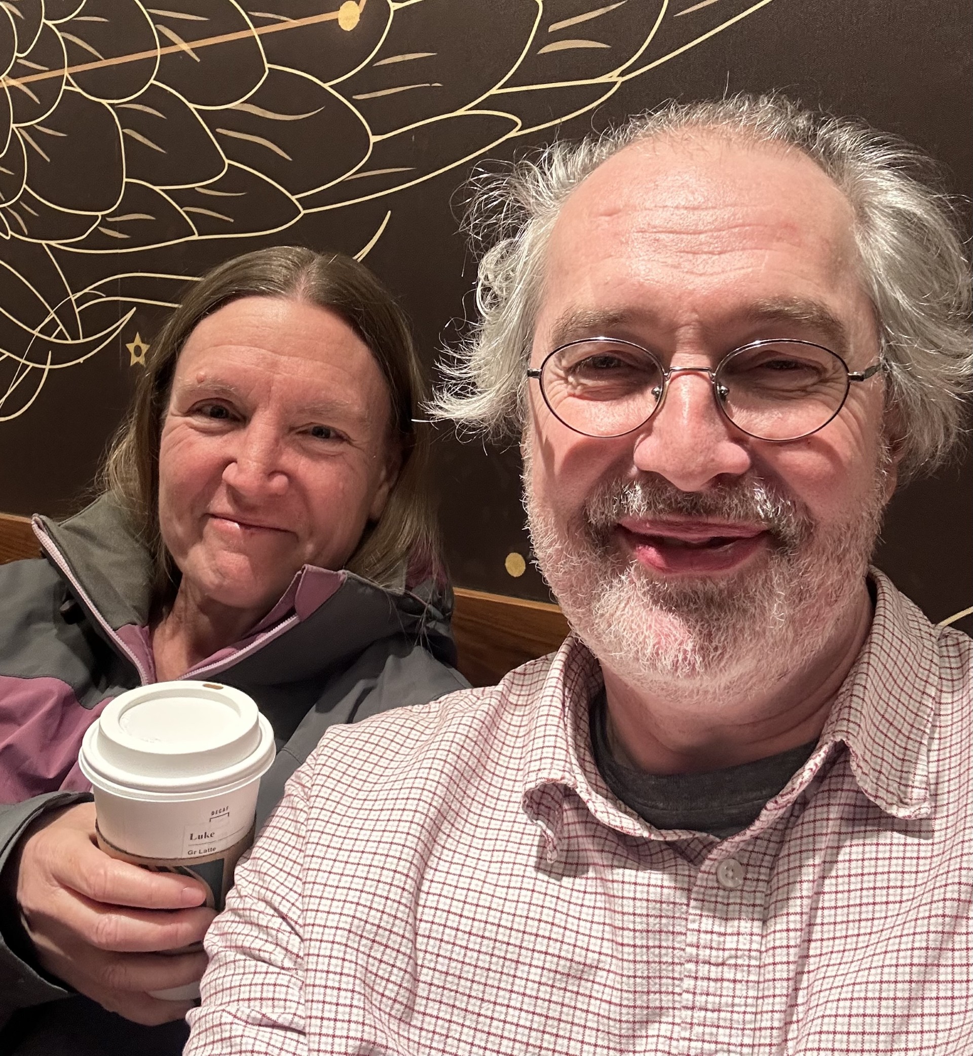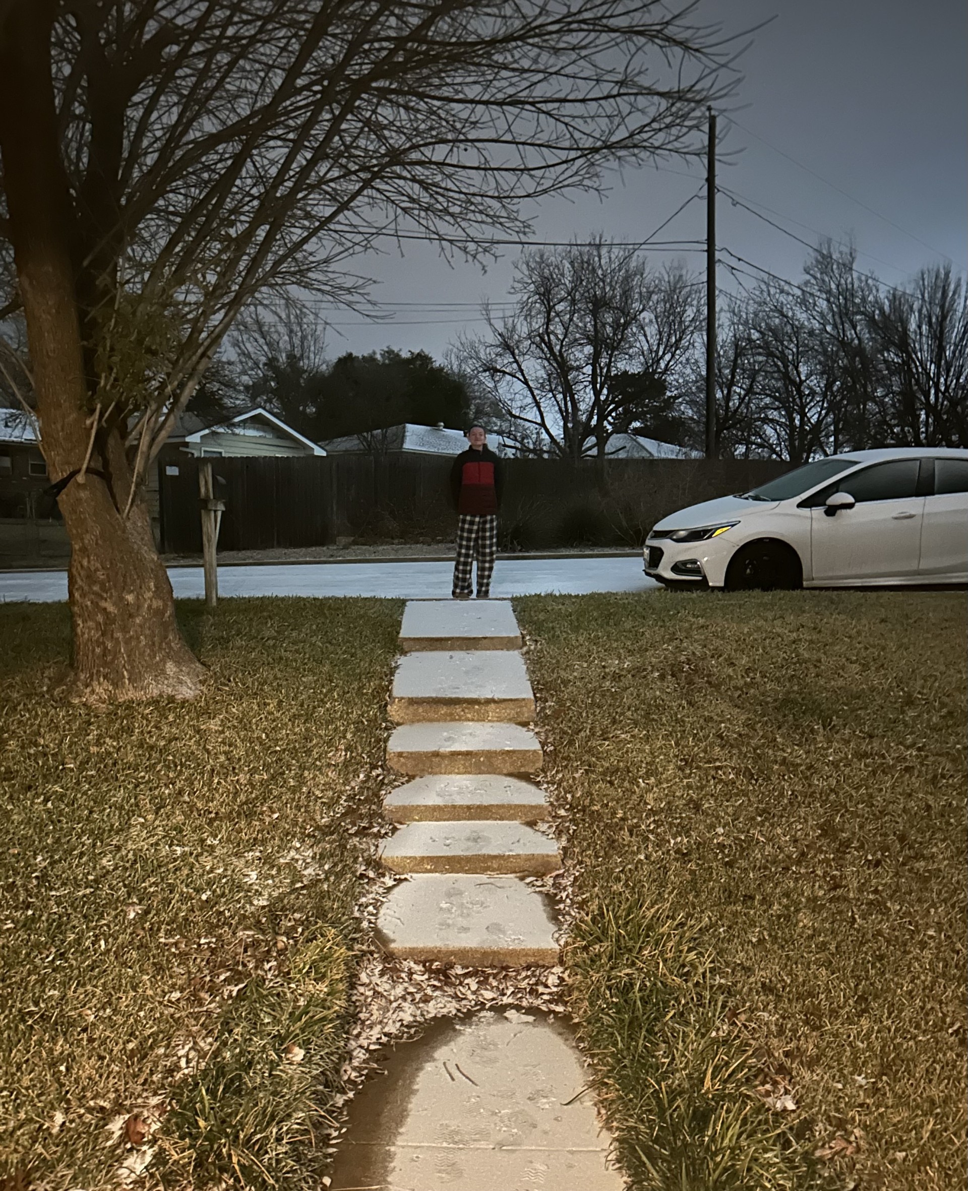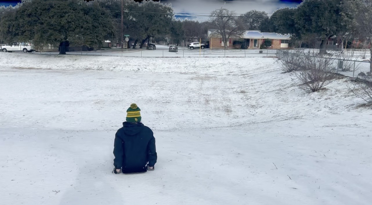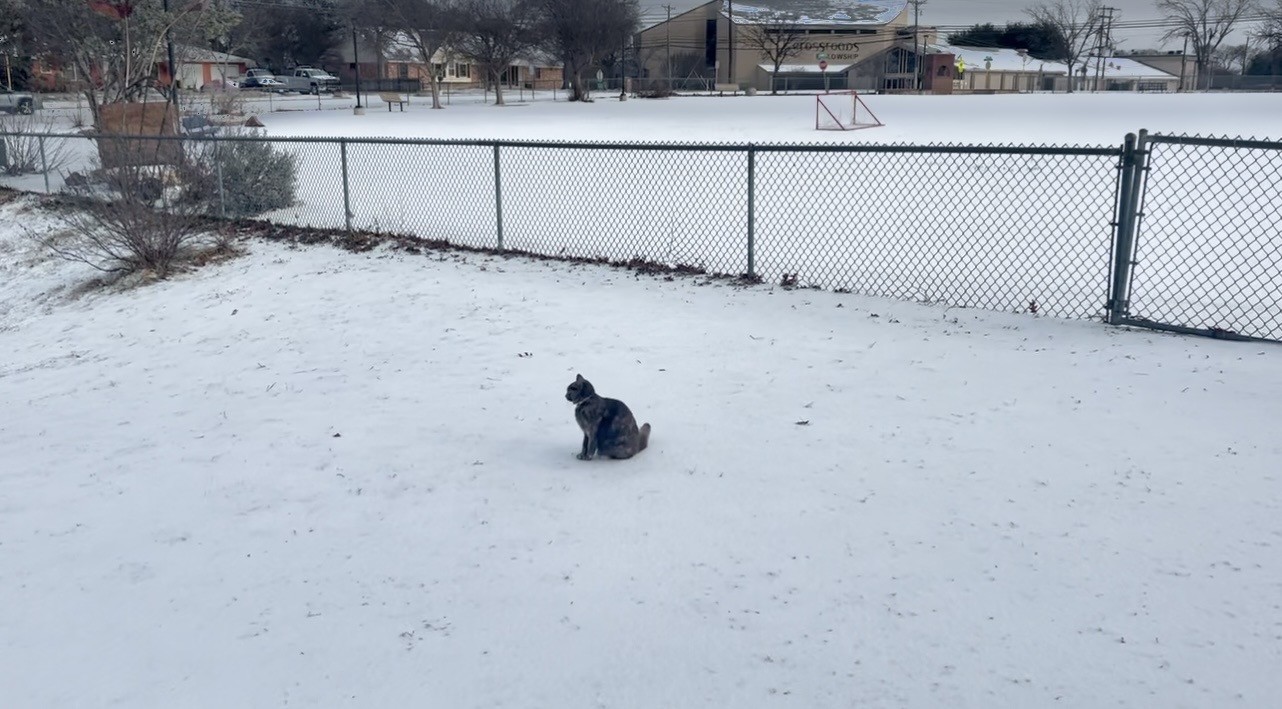 Lucy makes a snowball; then goes sledding, watched by Lotus the cat; Jen and I walk through the snow to Starbuck’s.